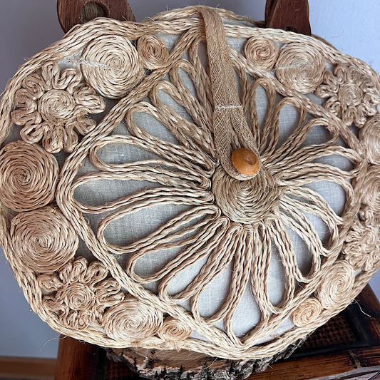Vintage Hand Woven Straw Bag with Wooden Handles