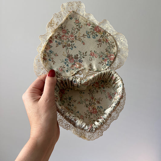 Vintage Cottage Core Floral Fabric Heart Shaped Box