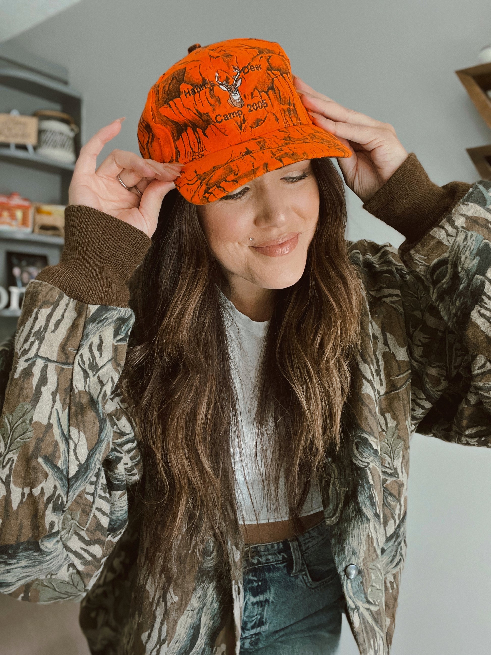 Deer Camp '05 Youth Orange Camo Hat