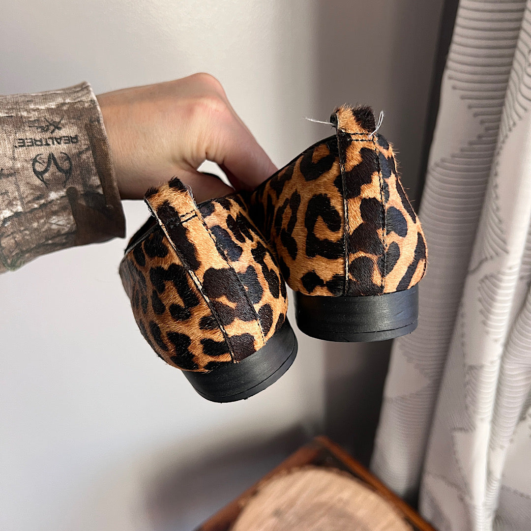 Franco Sarto Studio Leopard Calfhair Slip On Flat Pointy Toe Loafer (9/9.5)