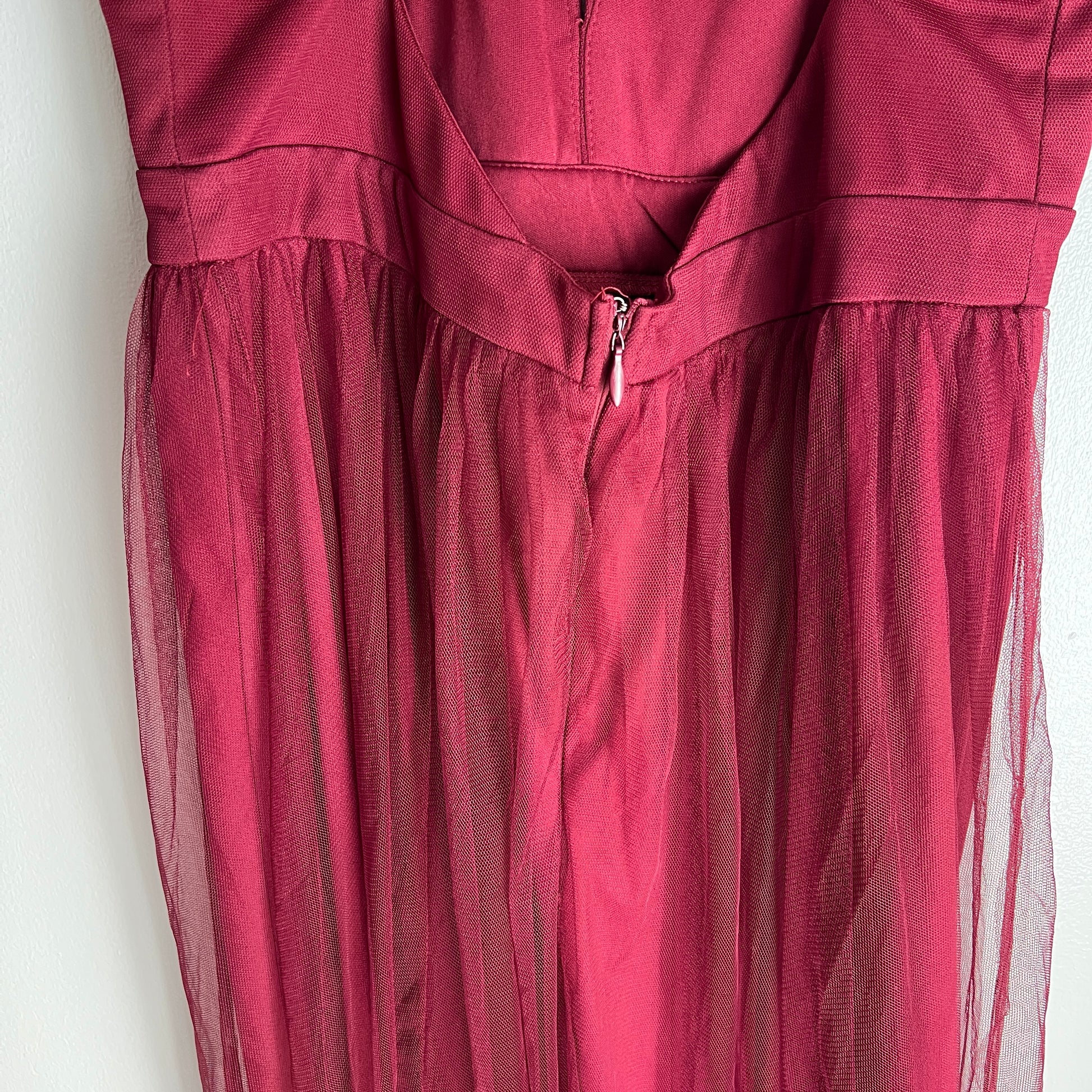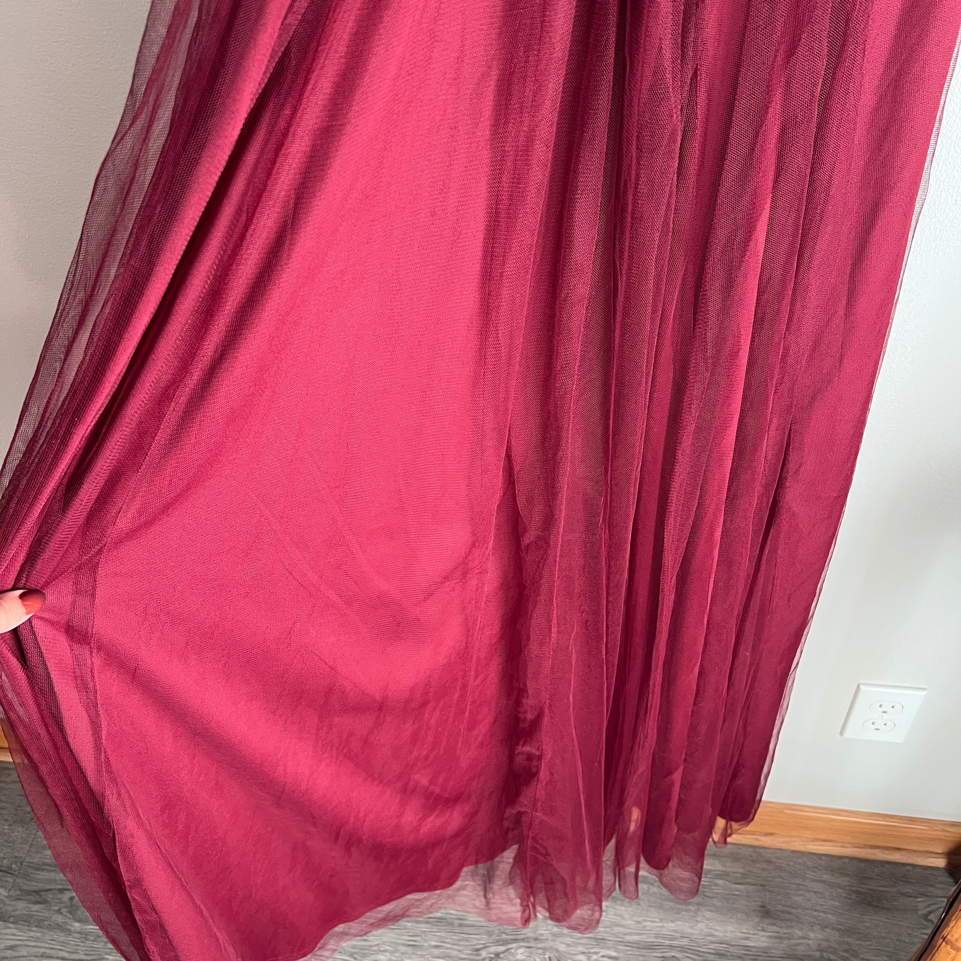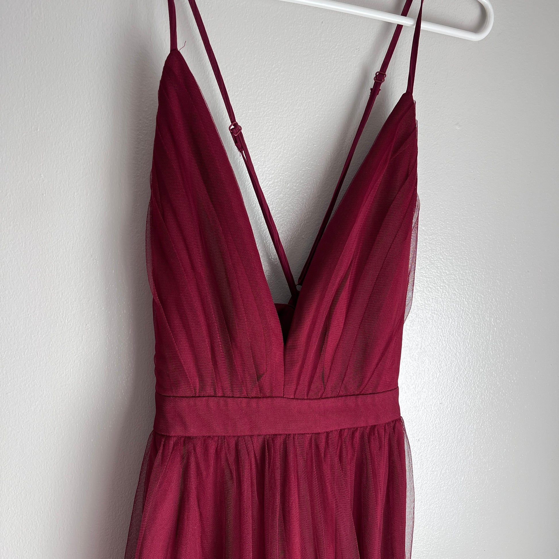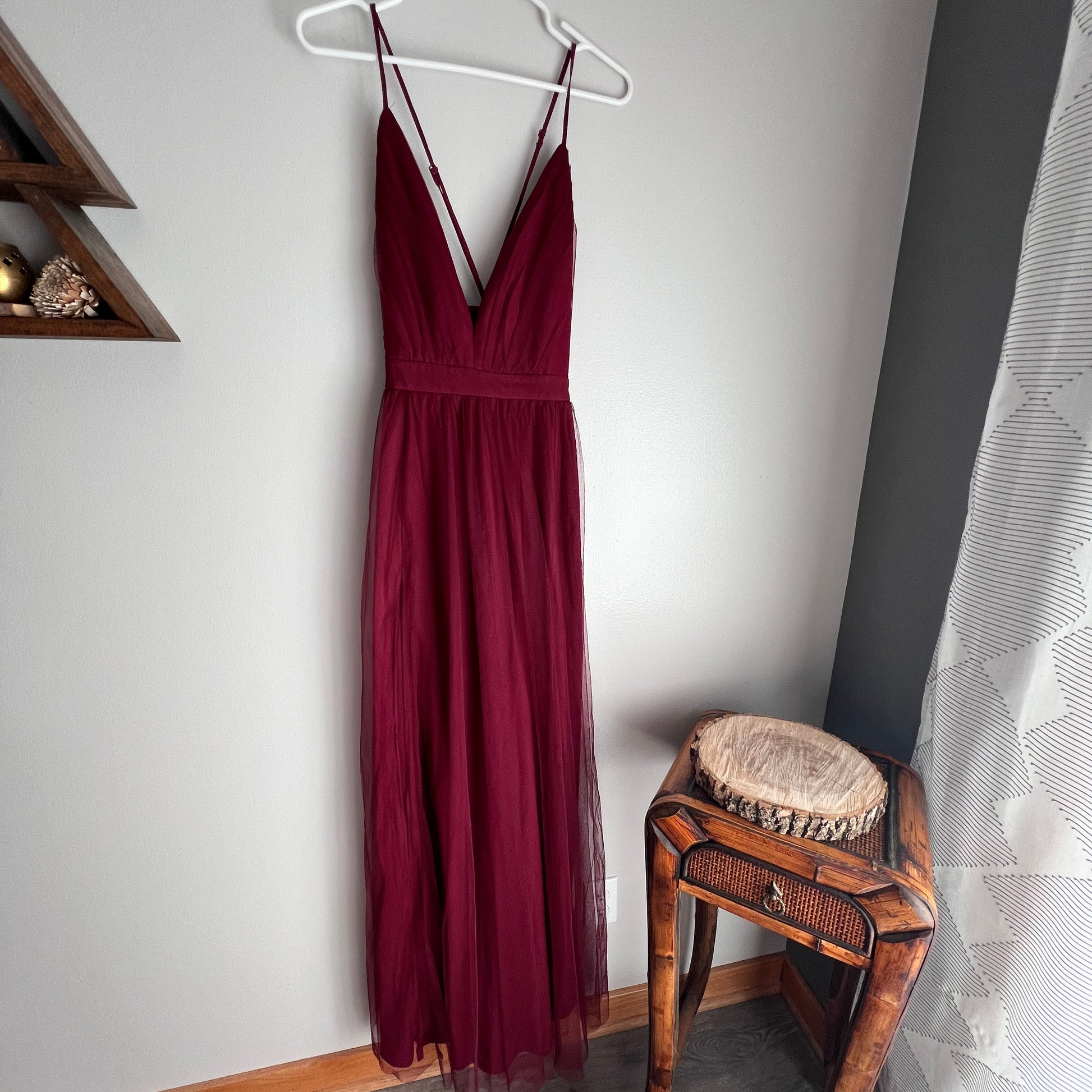 Lulu’s Rare Beauty Tulle Maxi Dress in burgundy/maroon - would be great for a bridesmaid dress or formal wedding guest dress!