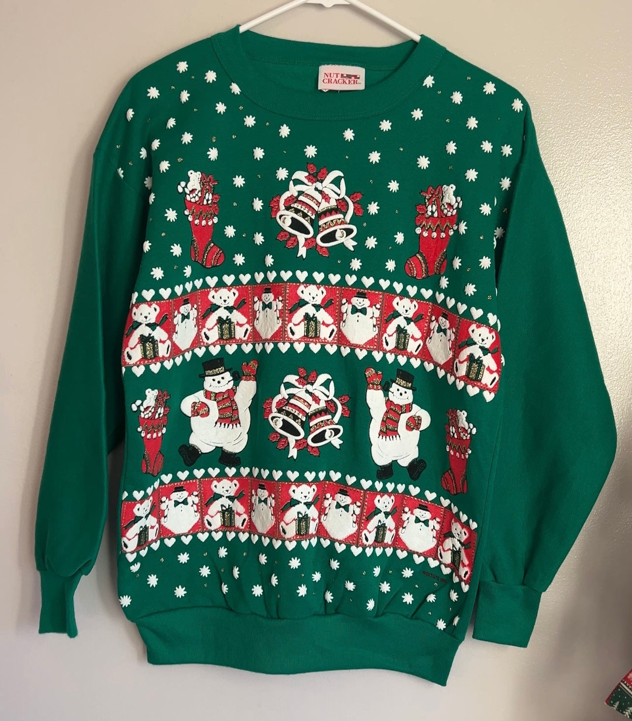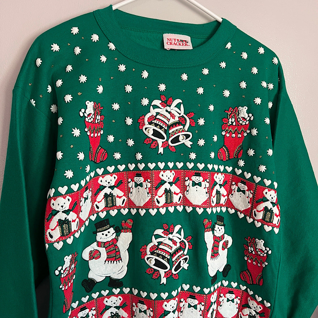 Vintage '90s Nutcracker Snowman Hearts Christmas Sweatshirt Made in USA