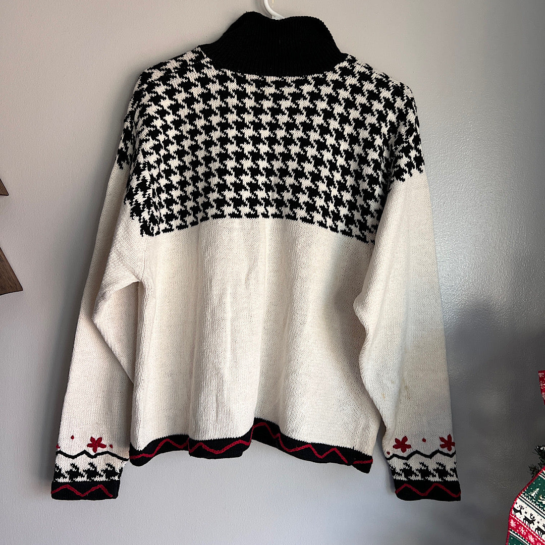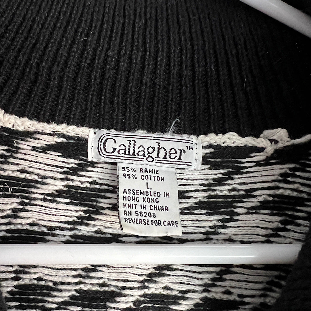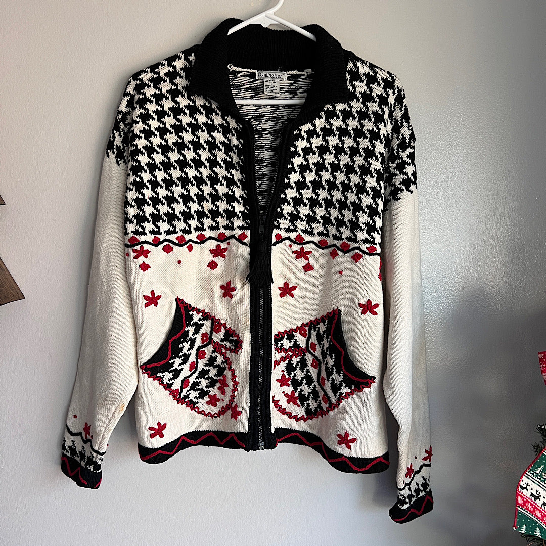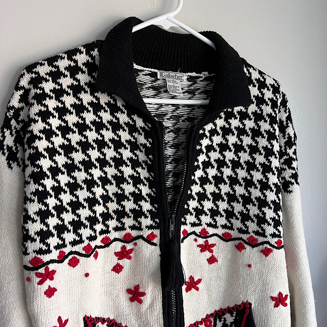 Vintage Gallagher Houndstooth Zip Up Cardigan Sweater