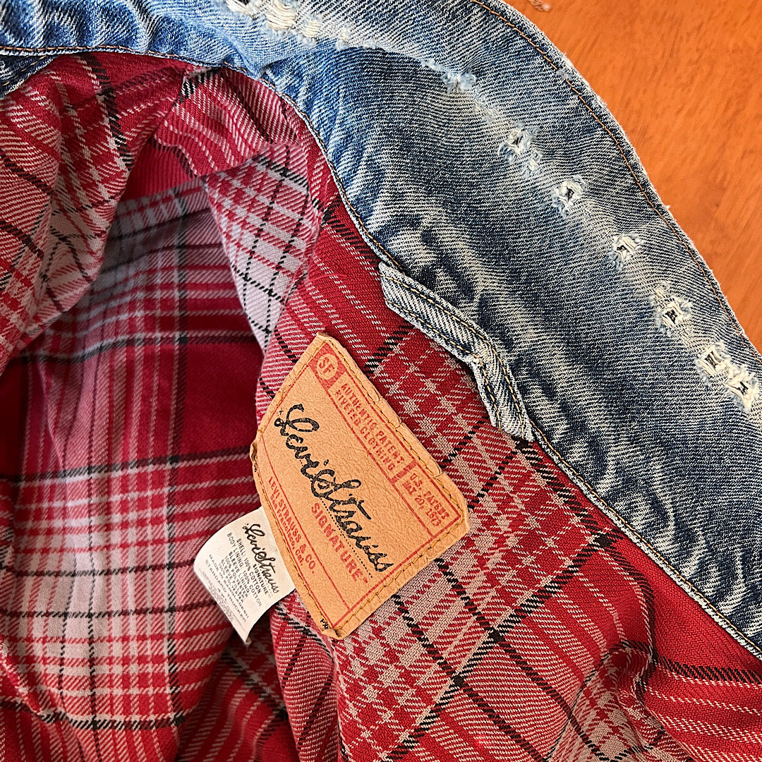 Vintage Levi's Plaid Lined/Quilted Sleeves Denim Jacket