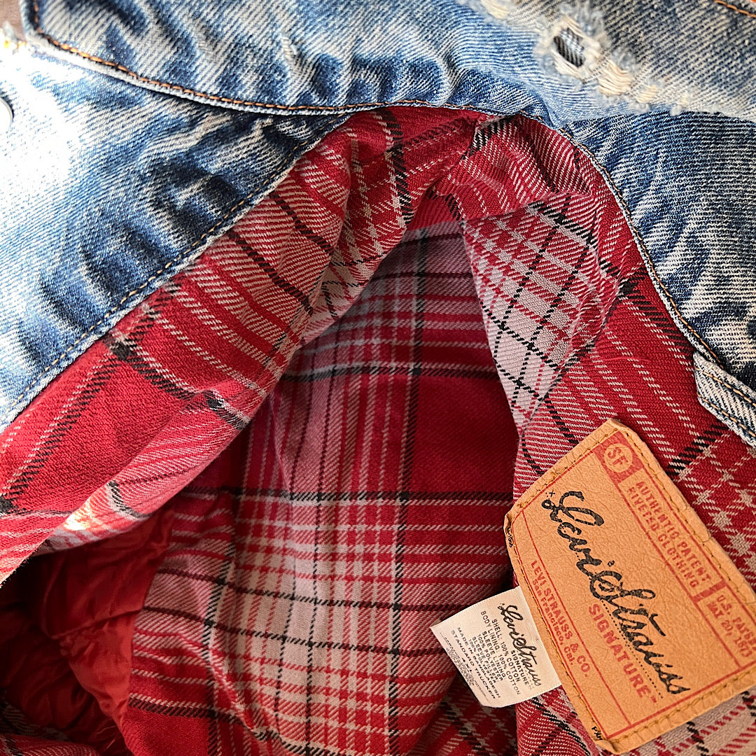 Vintage Levi's Plaid Lined/Quilted Sleeves Denim Jacket Standard Trucker