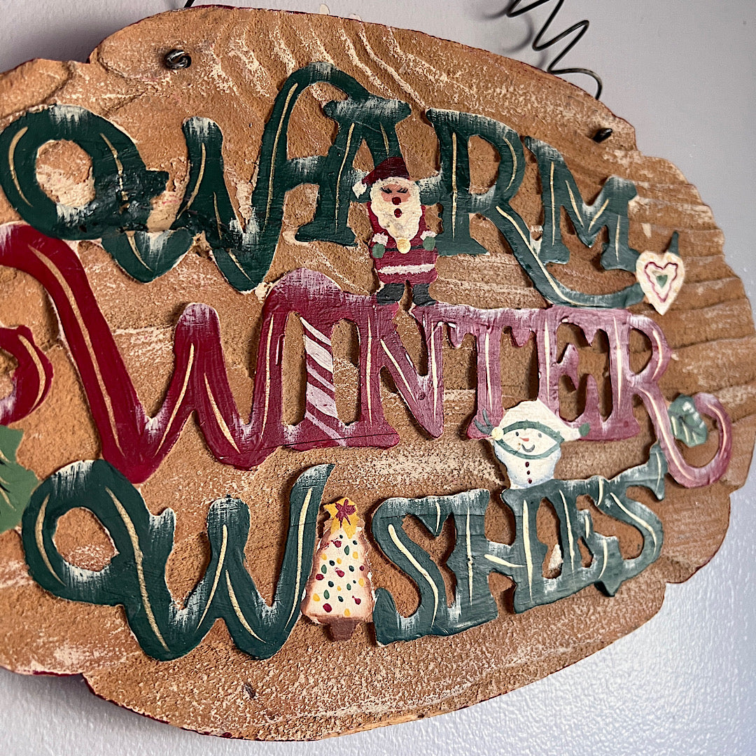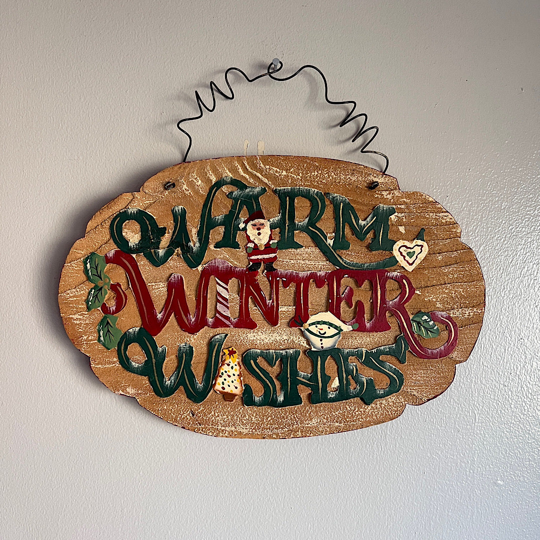 Vintage Warm Winter Wishes Wood Sign